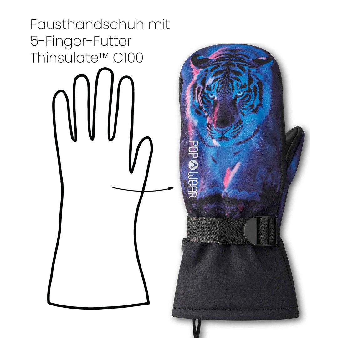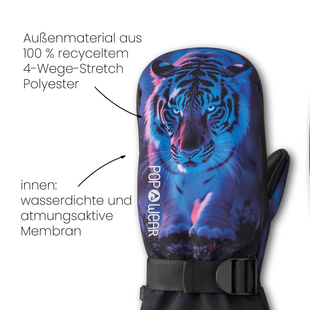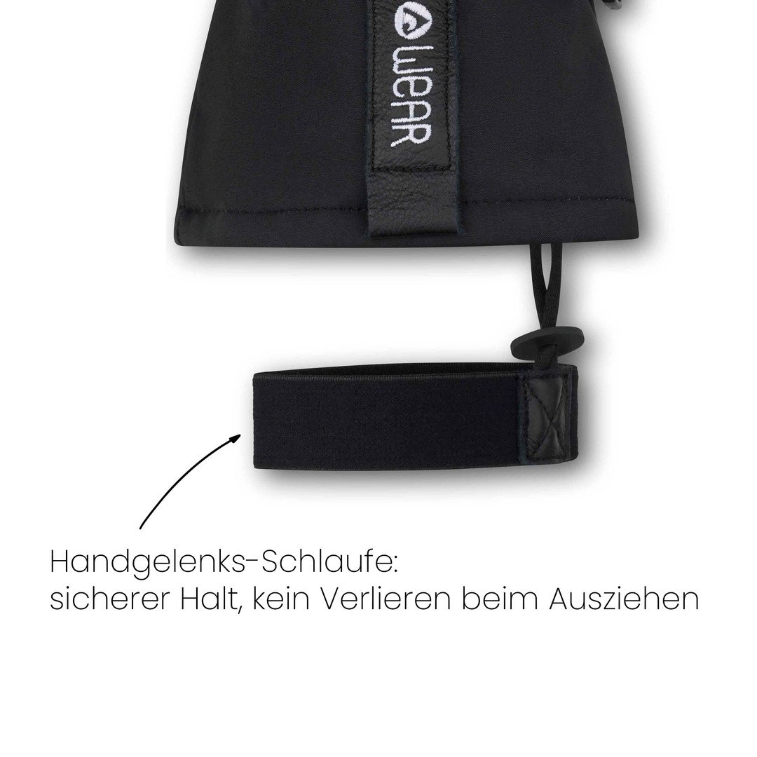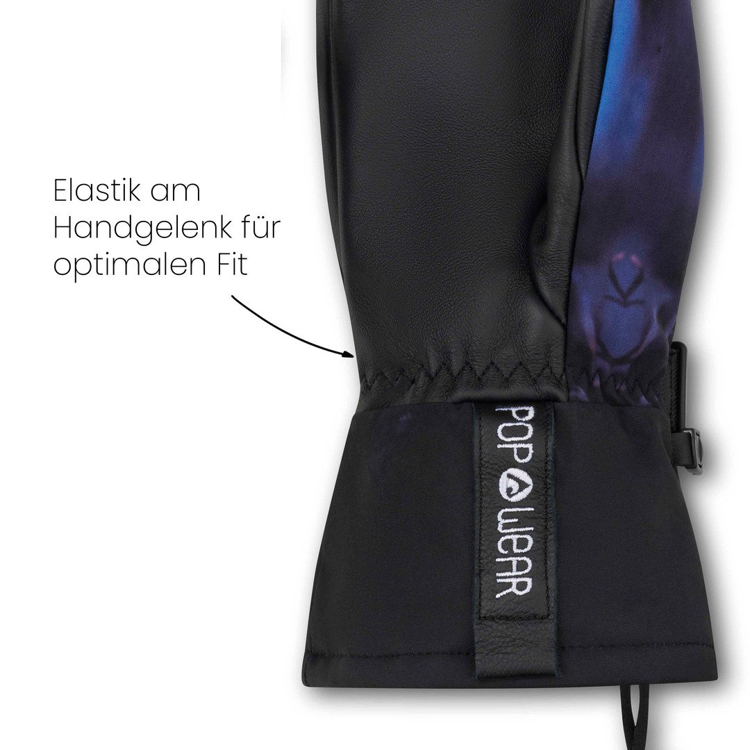 POPWEAR Skihandschuhe MARLEY – technischer Aufbau: 5-Finger-Innenfutter mit Thinsulate™, atmungsaktive und wasserdichte Membran, Außenschicht aus recyceltem 4-Wege-Stretch-Polyester und echtem Leder