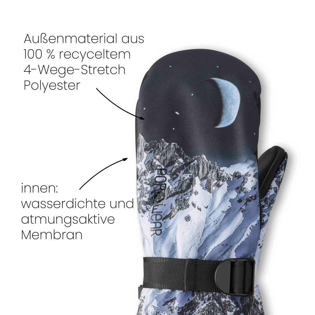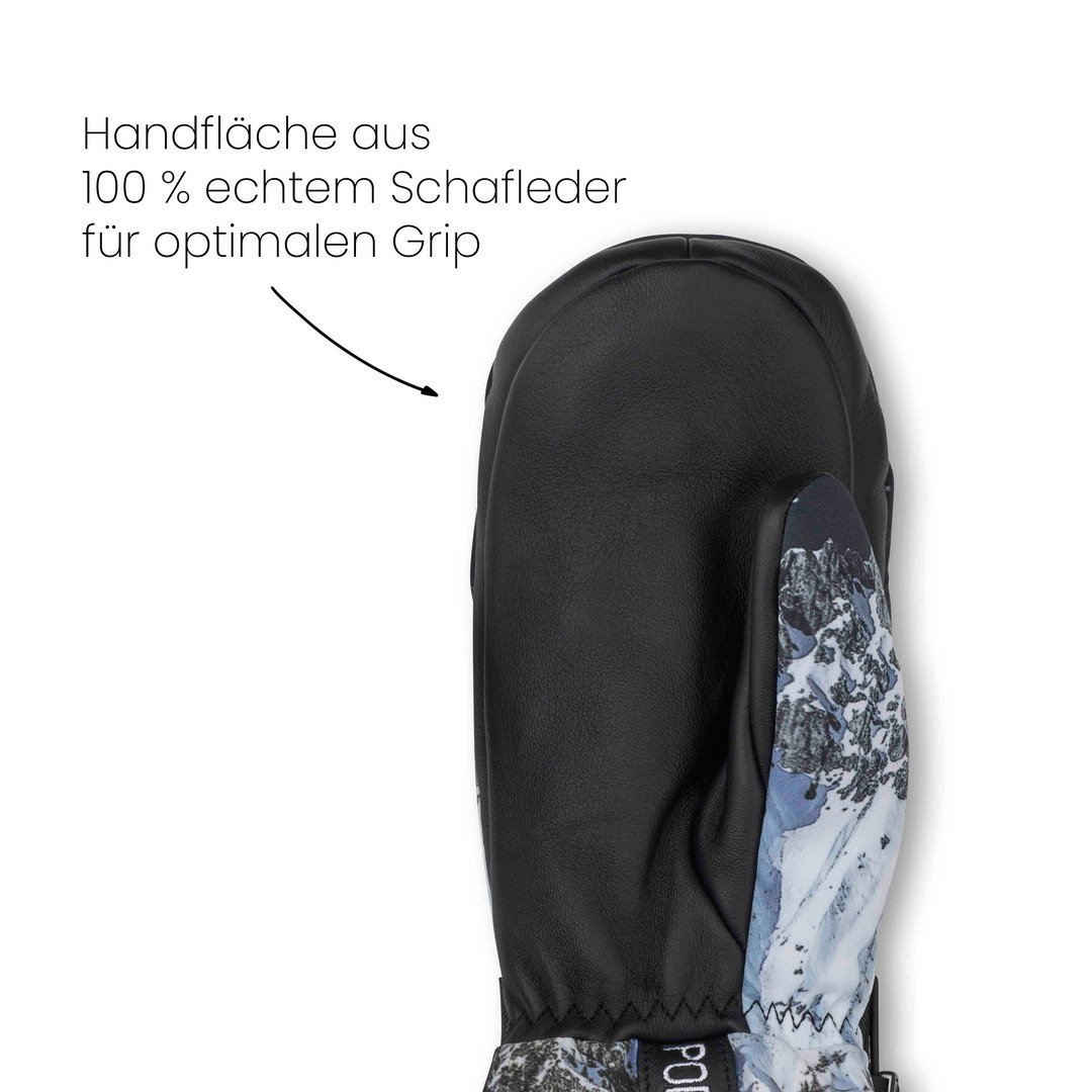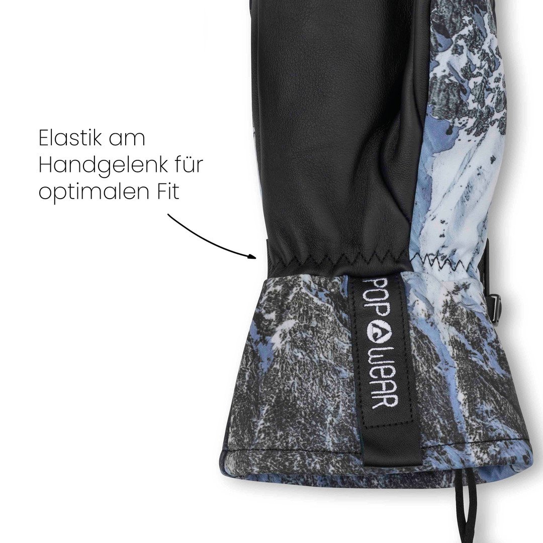 POPWEAR Skihandschuhe MARLEY – technischer Aufbau: 5-Finger-Innenfutter mit Thinsulate™, atmungsaktive und wasserdichte Membran, Außenschicht aus recyceltem 4-Wege-Stretch-Polyester und echtem Leder
