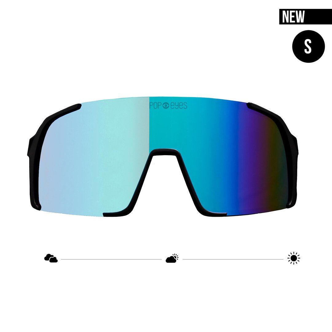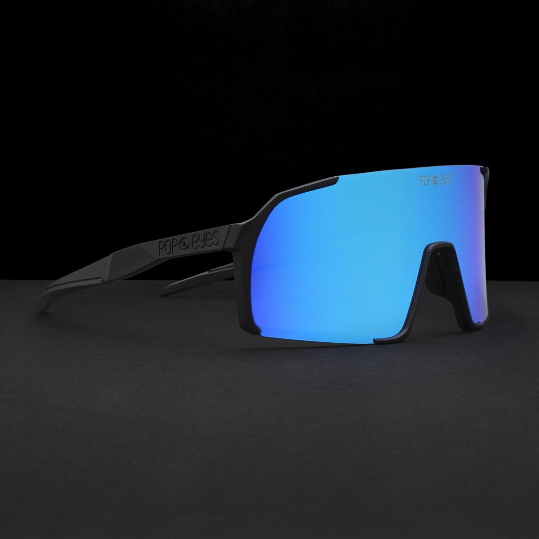 POP EYES Sport Sonnenbrille EDDY Black Ocean Blue – vielseitige Sportbrille mit Wechselgläsern in seitlicher Ansicht, ideal für Radfahren und Outdoor-Sport