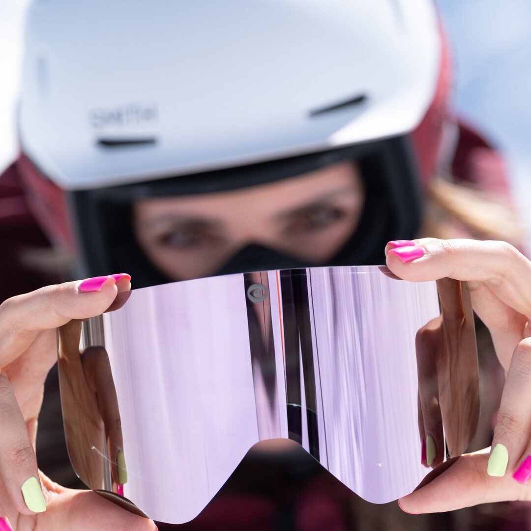 The secure grip of the magnetic lens is one important component, but the lens must still be able to detach quickly and easily from the holder during a change. With our ski goggles JAMIE, it's a breeze!