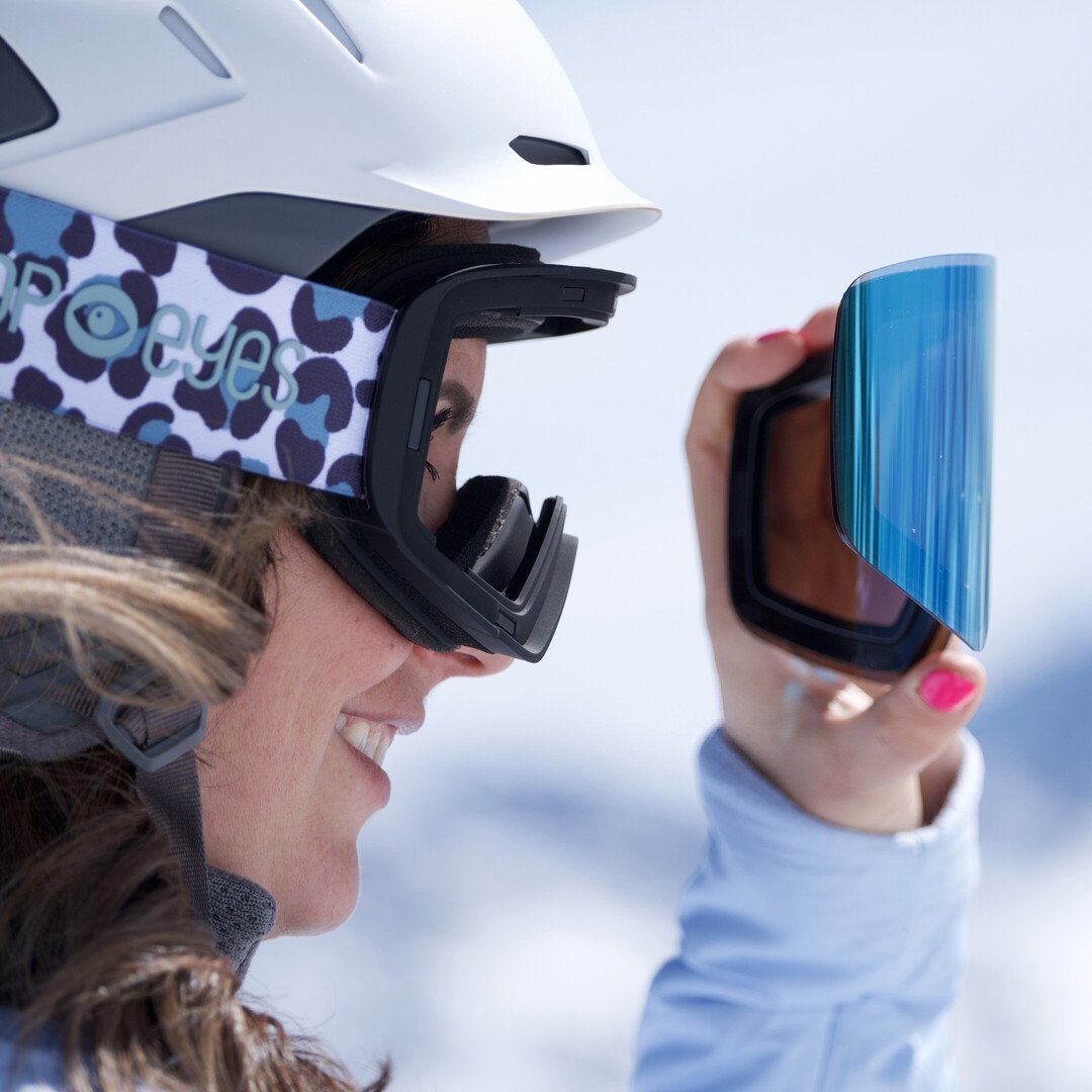 To keep your lenses protected off the slopes, you can store them in the included pouch. For even more security, there’s the POP EYES ski goggles case, offering room for one pair of goggles plus two extra lenses. Extra protection on top: the Lens Cover.