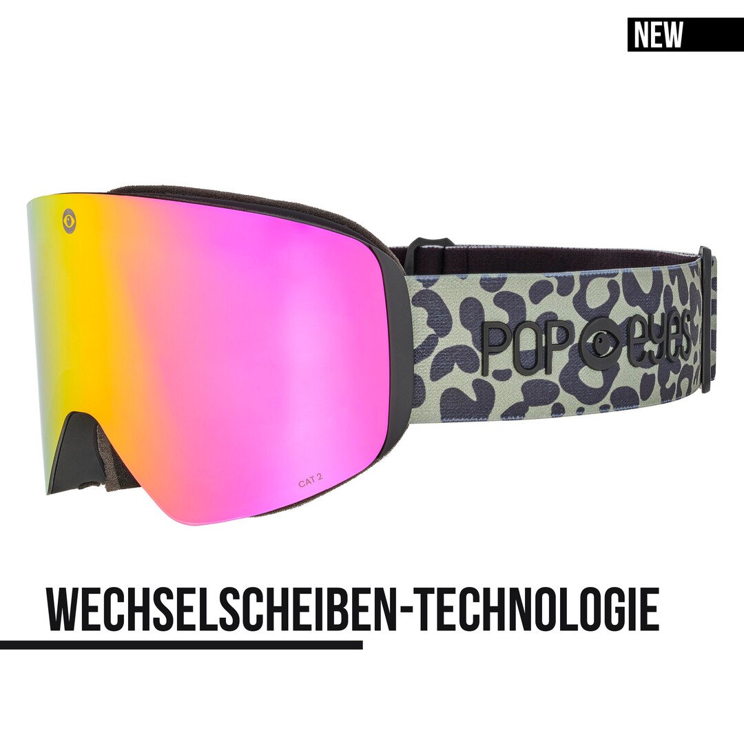 Wild, bold, and unmistakable – with my eye-catching animal-print strap in leopard design and colorful mirrored lens, I’m a true head-turner on the slopes.