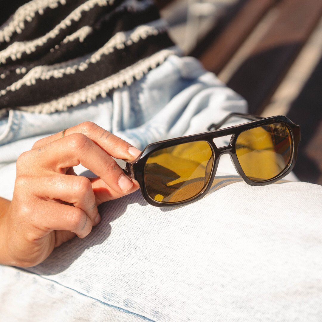 Black frame combined with yellow lenses – bold, urban, and full of cool retro vibes.