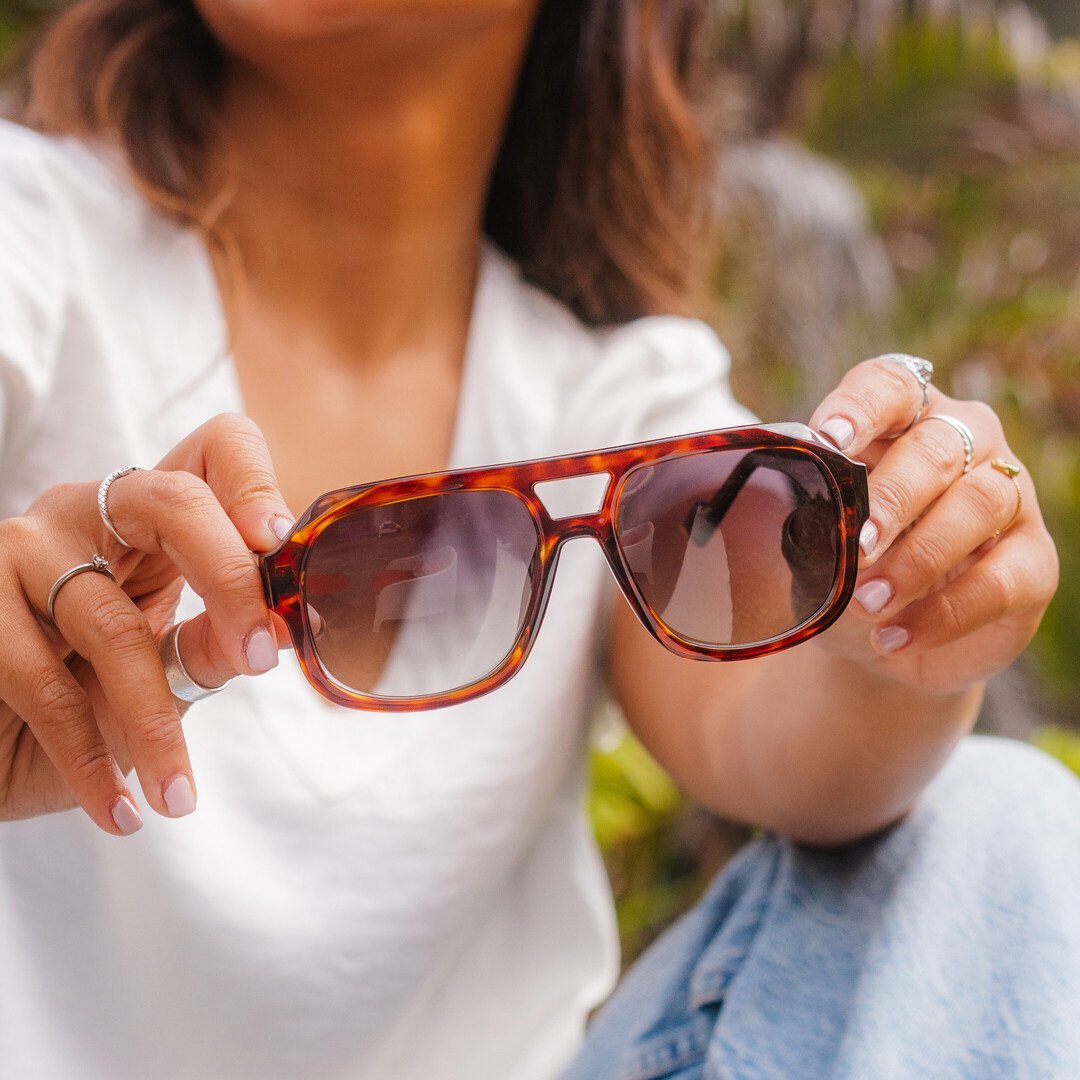 Warm tortoise frame with brown gradient lenses – elegant, vintage-inspired, and perfect for summer fashion looks.