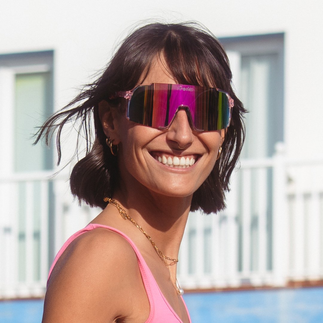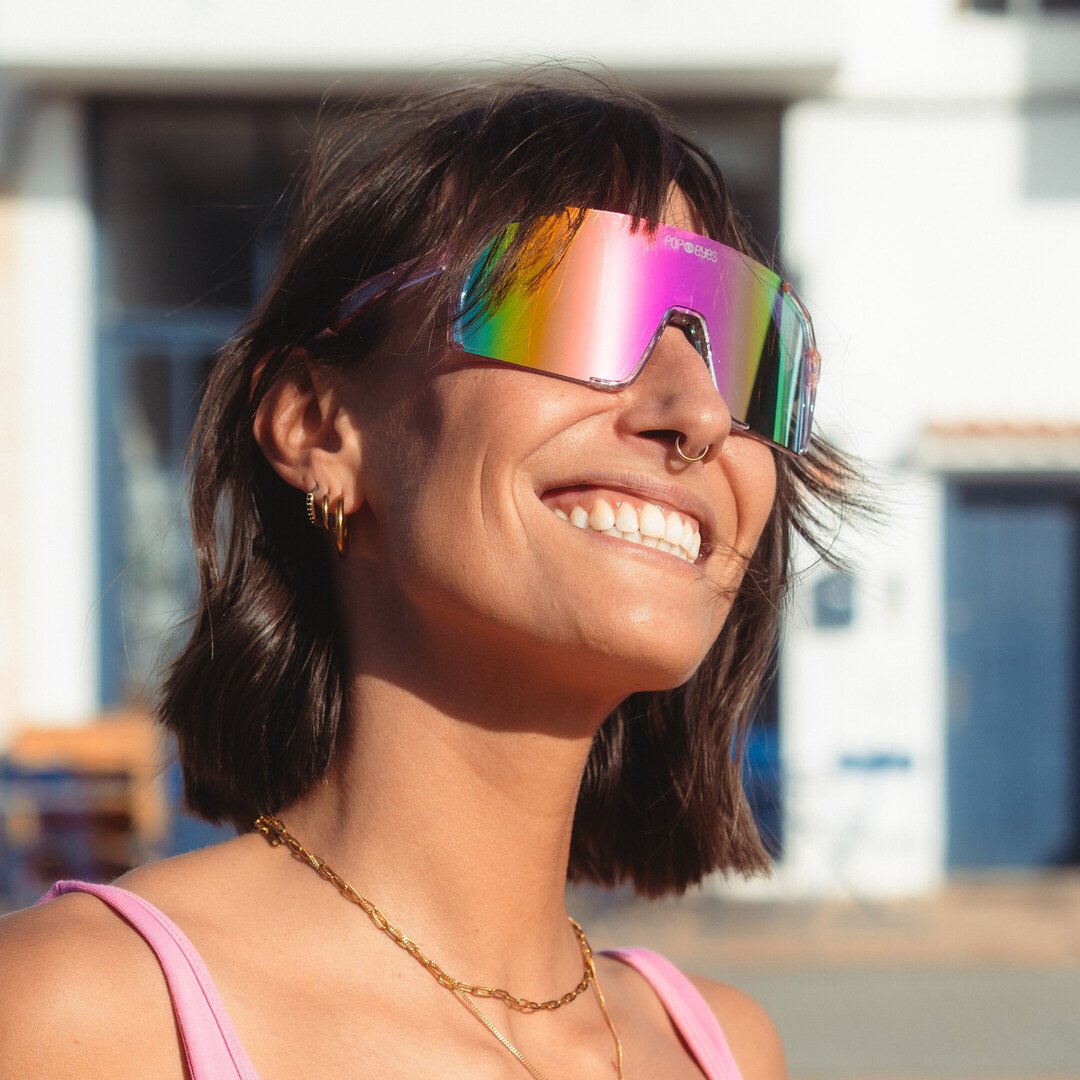 Polycarbonate sunglasses are particularly break-resistant. So if you drop your sunglasses, the lenses will not be damaged immediately. However, should the glass be destroyed in the worst case, there is no risk of injury because polycarbonate glasses do not splinter. Polycarbonate lenses can also be ground very thin, making them extremely light. The material also offers excellent UV protection. For this reason, sunglasses with polycarbonate lenses are perfect for lifestyle and sports glasses. It goes without saying that we use polycarbonate for the lenses of all POP EYES sunglasses.