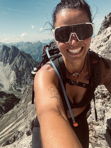 Jasmin radiates pure joy and energy – ambitious, full of life, and always ready for a challenge. Whether hiking, ski touring, road cycling, or swimming – she loves pushing her limits while feeling connected to nature.