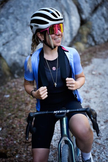 Her biggest achievements? Winning the regional road cycling championship in Baden-Württemberg and joining a national-level cycling team. But her most emotional moment: completing the full Ötztaler route side by side with her husband – ten hours of pure determination, shared joy, and unforgettable pride.